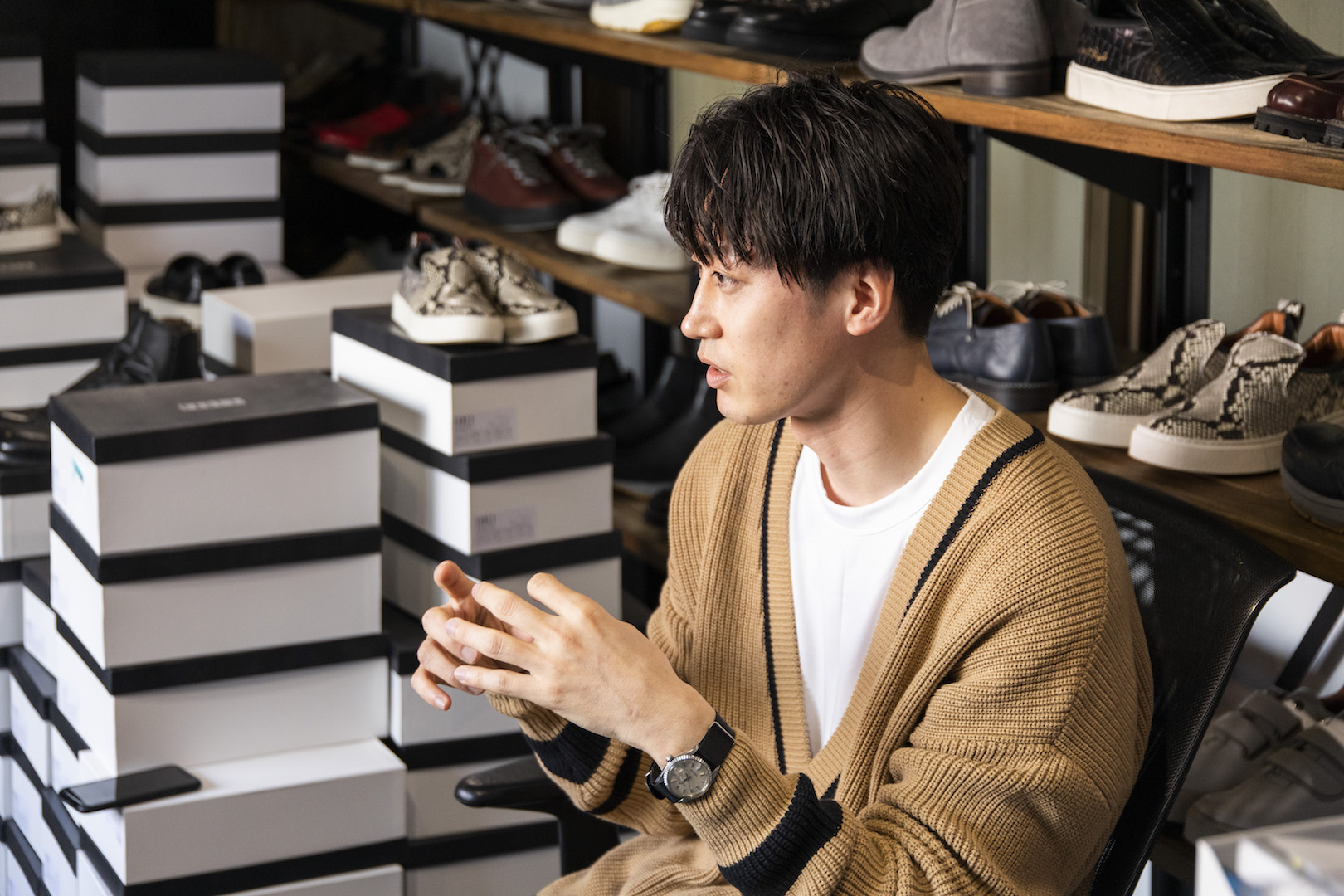 いま日本のマーケット含め、ヨーロッパもそこまで良くないと聞いています。ただ、アジア圏に関しては実際モノづくりの一部を生産しているので勢いを肌で感じています。既に世界基準で活動されているデザイナーさんもたくさんいますが、自分も日本だけでなくグローバルな視点でブランドを育てていきたい。また、シューズブランドは工程だったりノウハウだったり、クラフトマンシップな面にフォーカスされているブランドが多いと思うのですが、自分は元々洋服が好きでこの仕事を選んだので、ファッションとの関連性を広げたいです。実際いま複数の洋服ブランドさんと進めている協業アイテムもあるのですが、ファッションブランドとのコーディネイトだったりコラボレーションを強めて、消費者の方々にも「こんな履き方ができるんだ」「こういう組み合わせができるんだ」という提案を常にしていきたいと思っています。